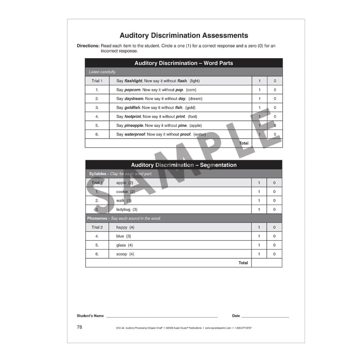 Target 12 skills within the areas of auditory discrimination, auditory memory, and auditory integration: