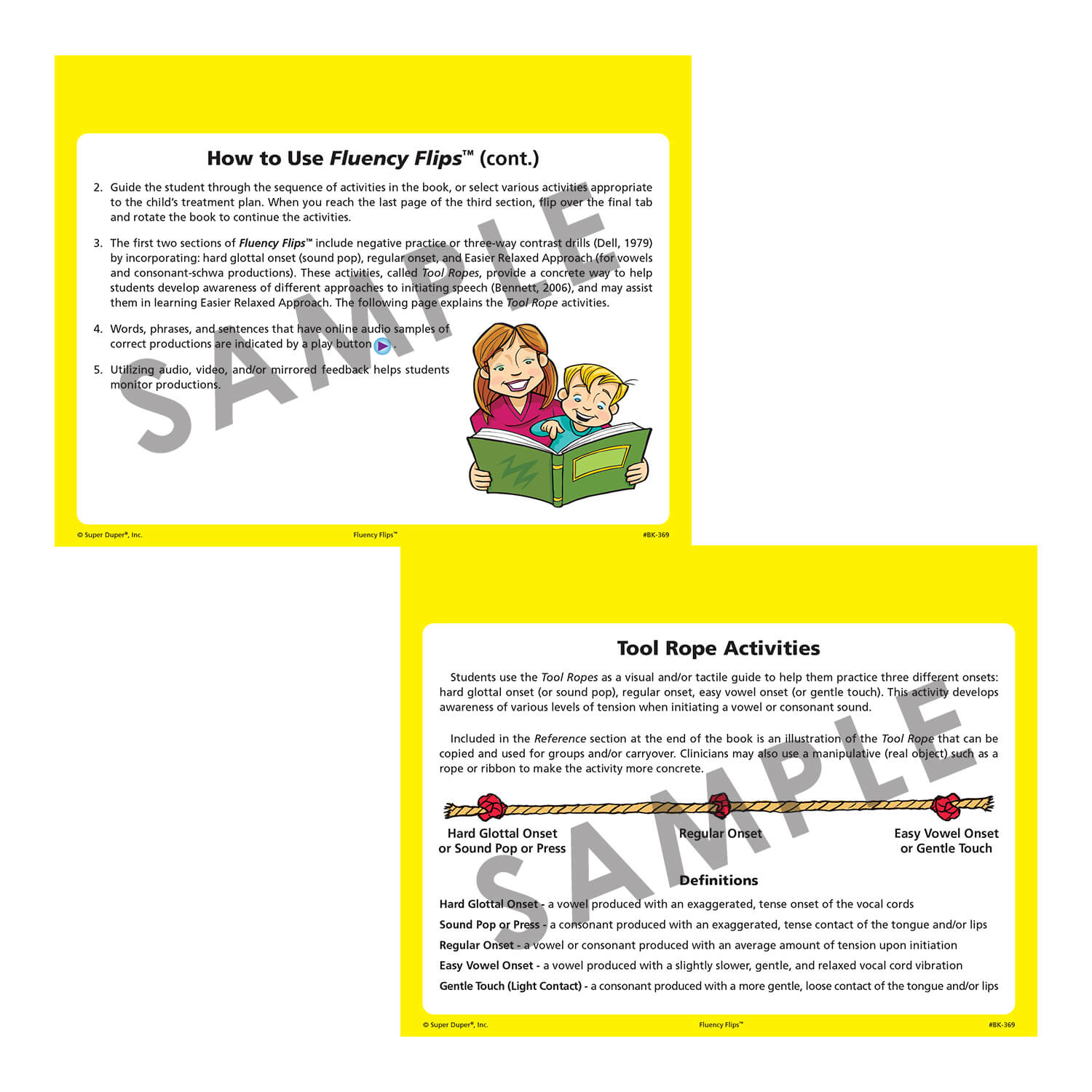 Keep stuttering therapy moving with less prep time and fewer materials! Fluency FLiPS is a convenient, all-in-one flip-book that will help you teach students strategies for smooth speech—plus online audio samples of the author producing each of the targeted skills provide a model for perfecting your teaching techniques.