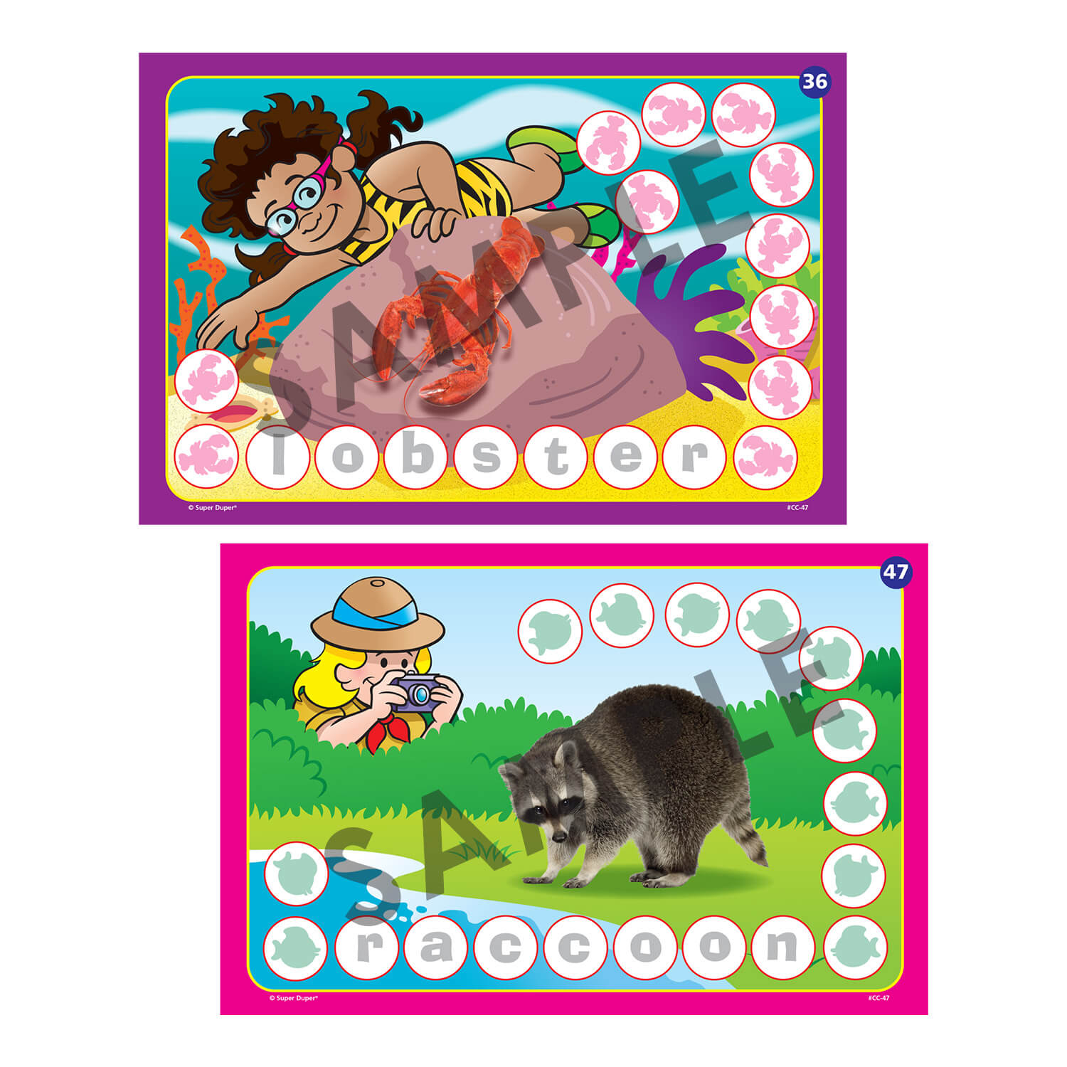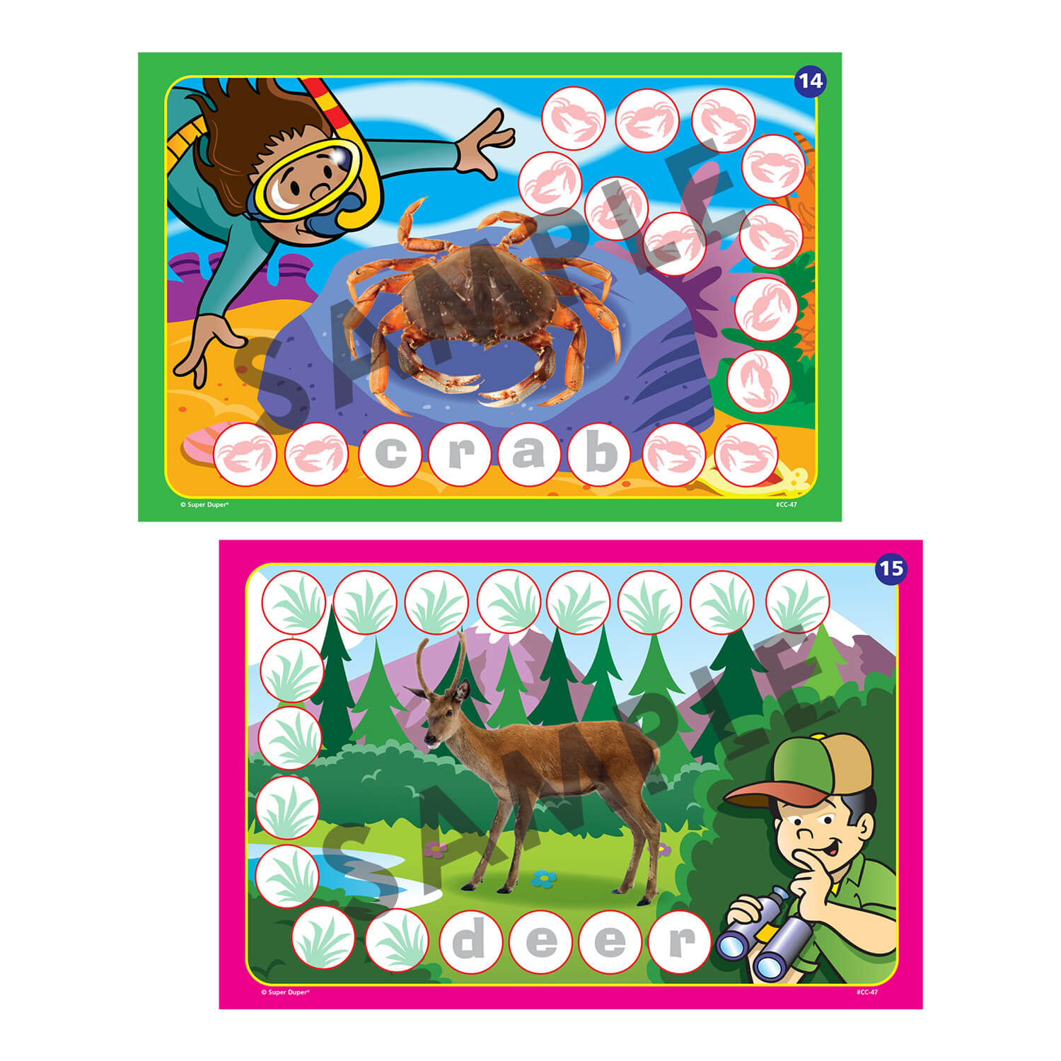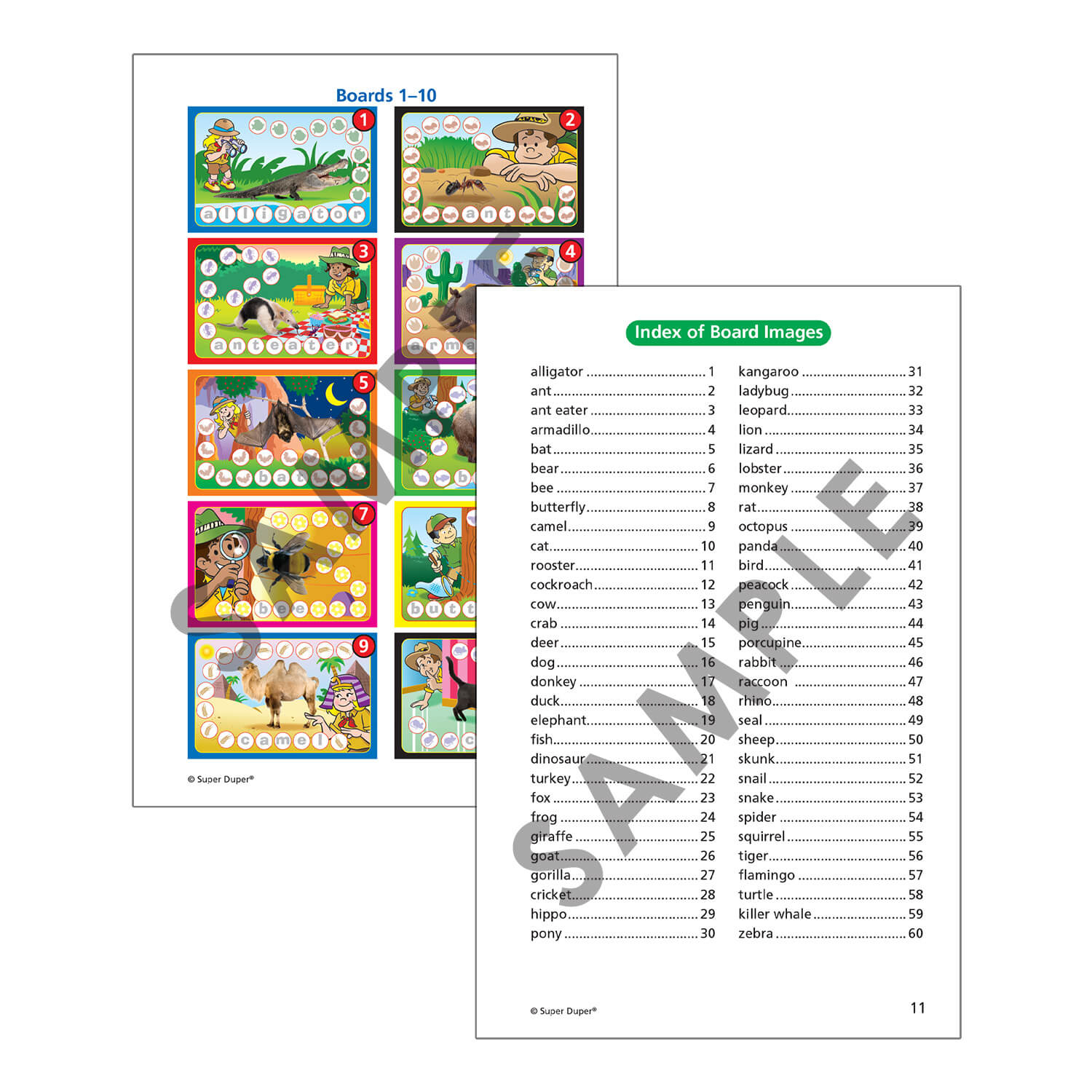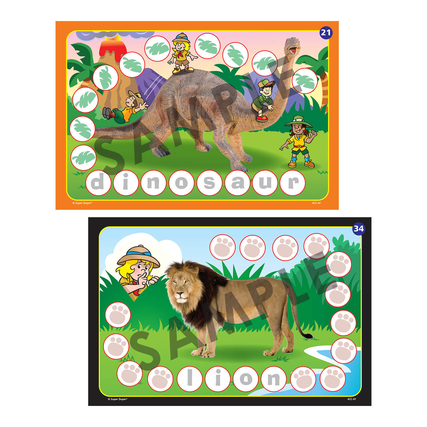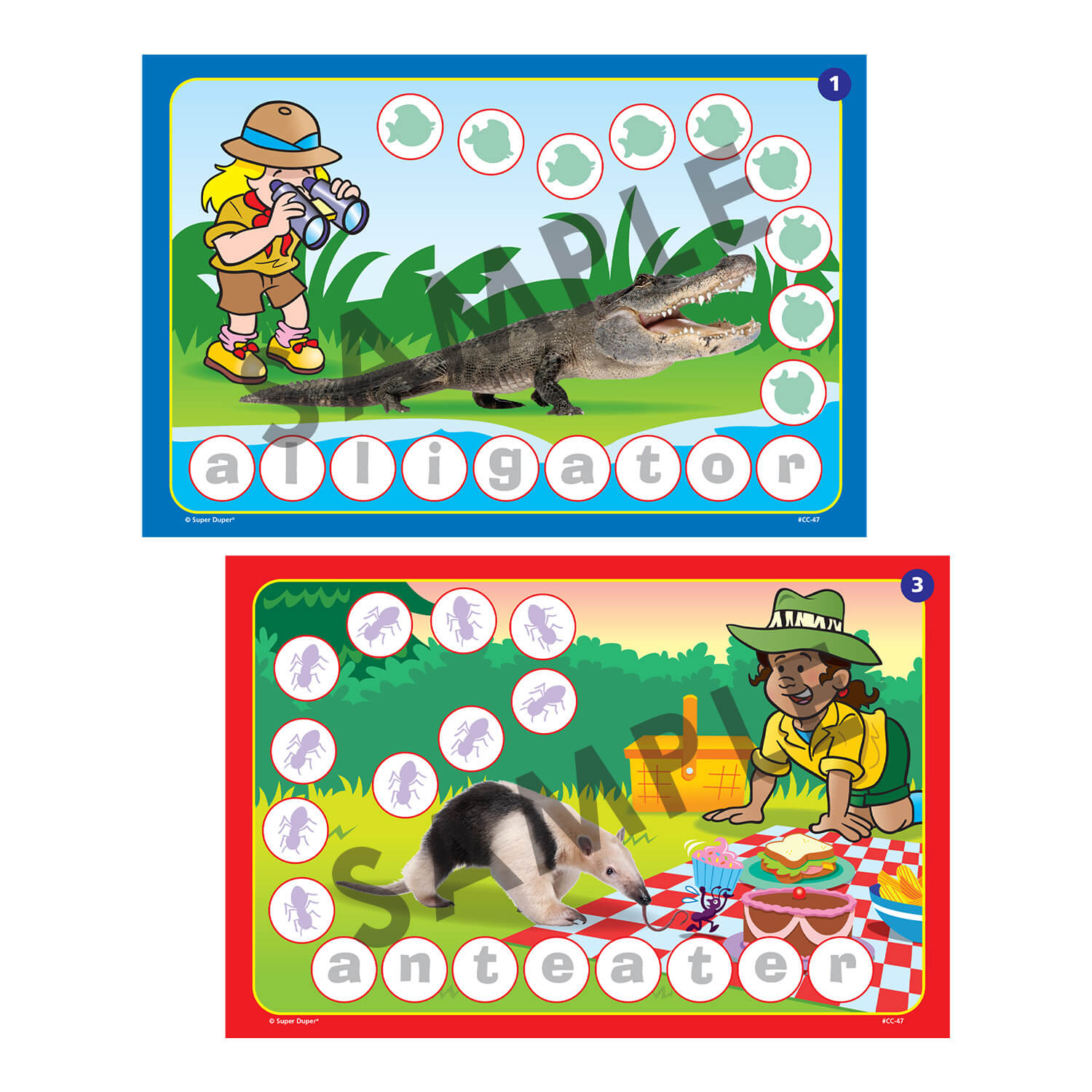 Best of all! Each of the 60 Chipper Chat boards has a photo of an animal with the animal name spelled out in the spaces. These engaging game boards provide countless opportunities for your students to practice the grammatical structures they learn by creating sentences about their animal. Let the syntax safari begin!