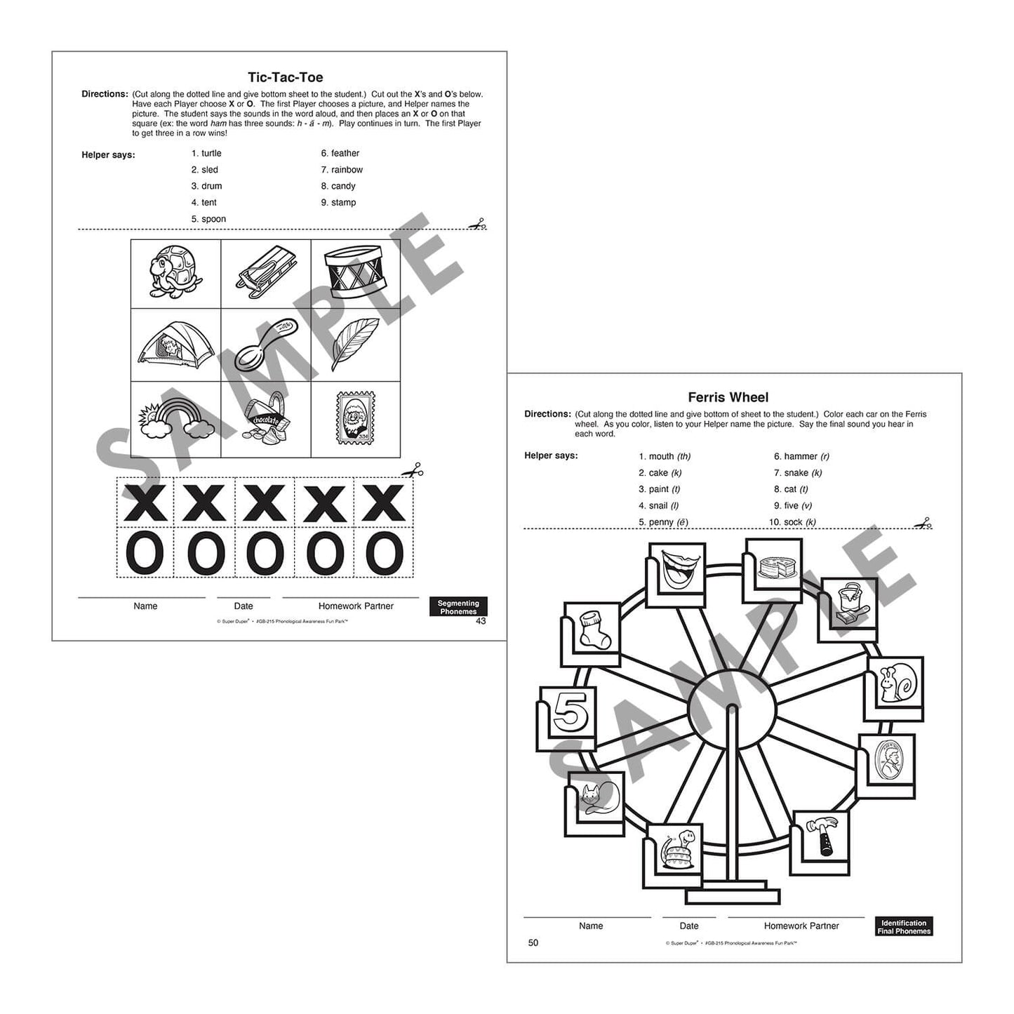 The activity book has follow-up activities for each of the 7 phonological awareness areas. The book includes additional school or home practice, extension activities, a data record sheet, and awards. Also, a Parent/Helper letter to facilitate carryover in the home.