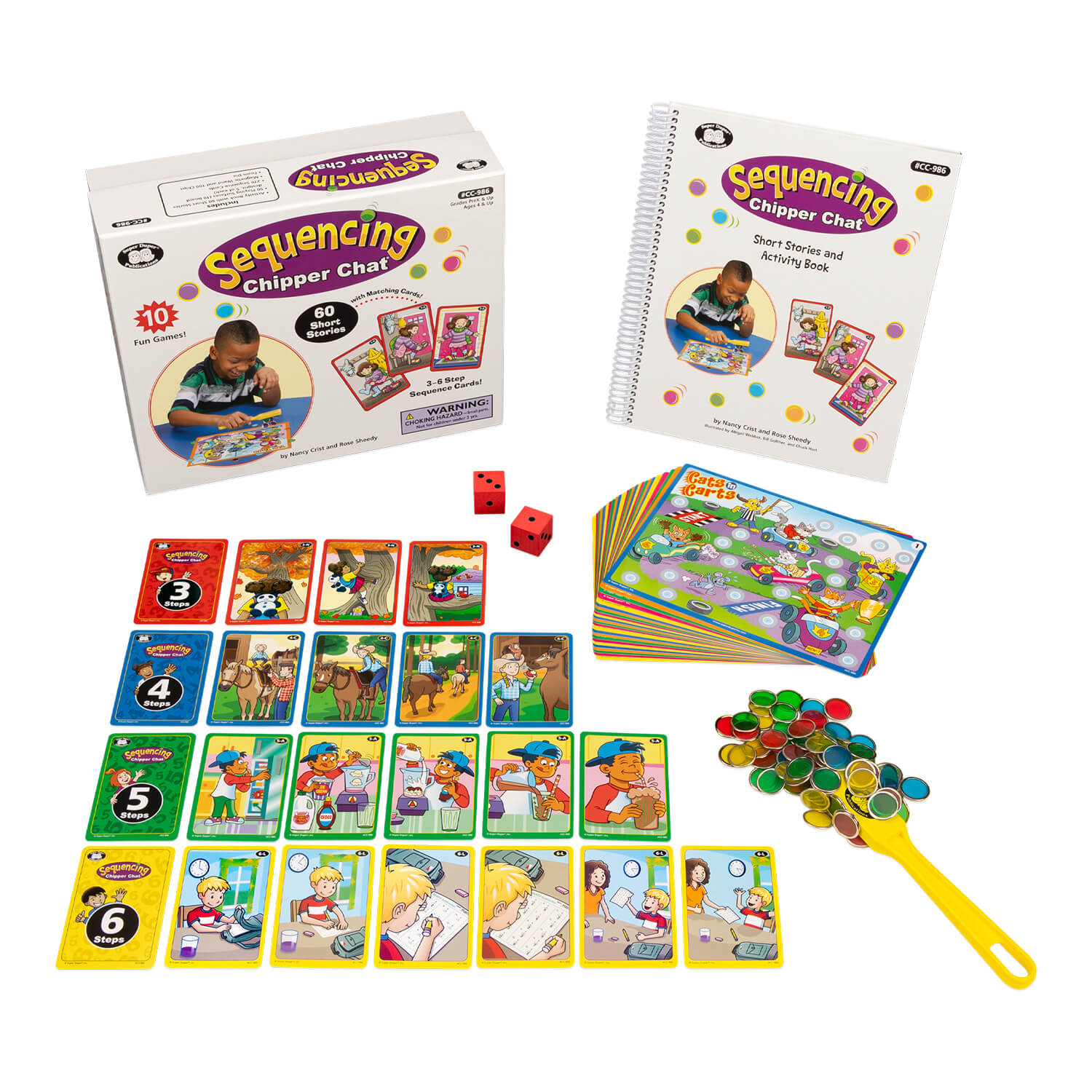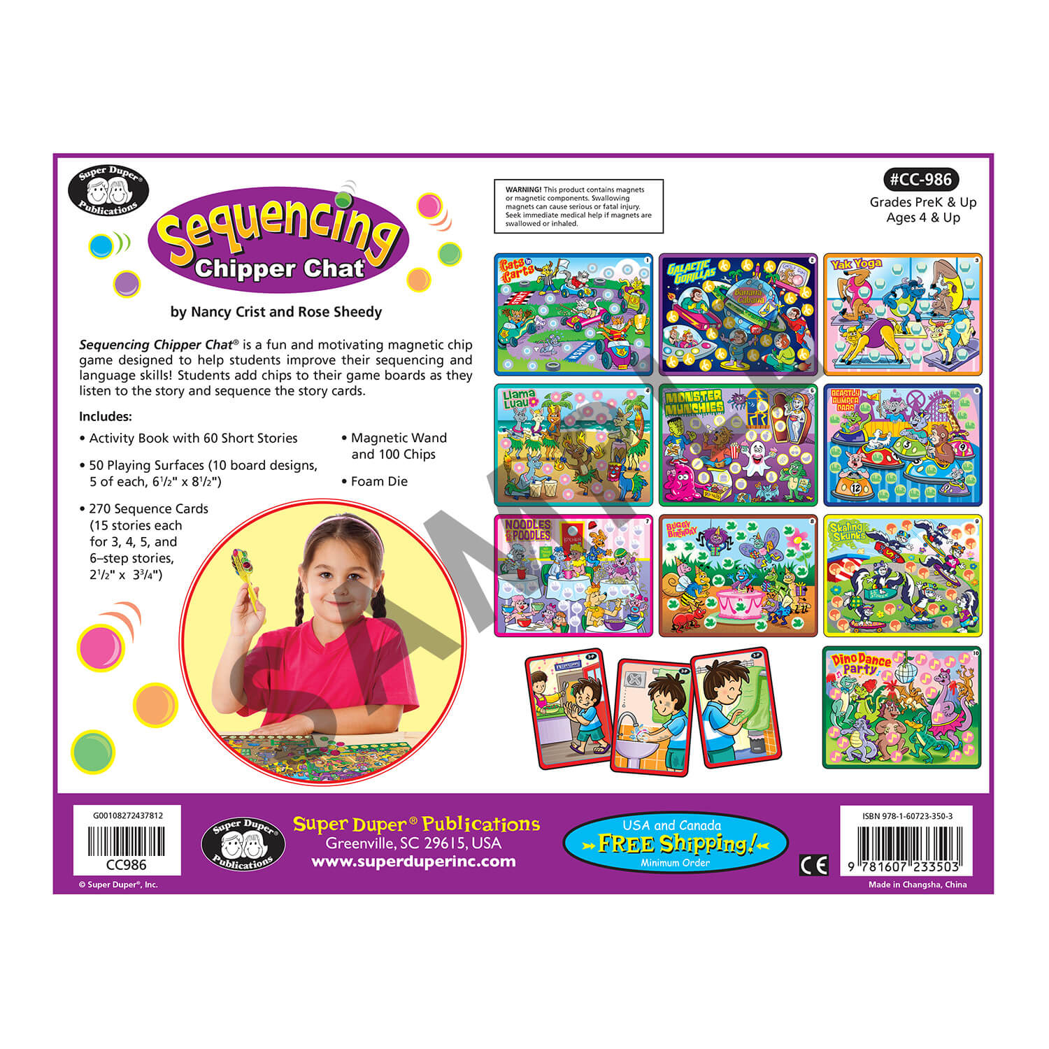 Improve sequencing, story retell, and language skills with this fun and motivating magnetic chip game! Students add chips to their game boards as they listen to short stories and sequence the story cards. Game boards do not correlate with the card sets, allowing you to use any game board with any card set.