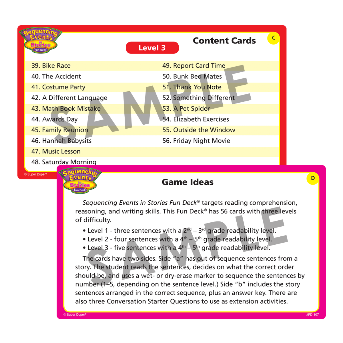 This Fun Deck targets reading comprehension, reasoning, and writing skills. The deck has 56 cards (7" x 4") with three levels of difficulty.