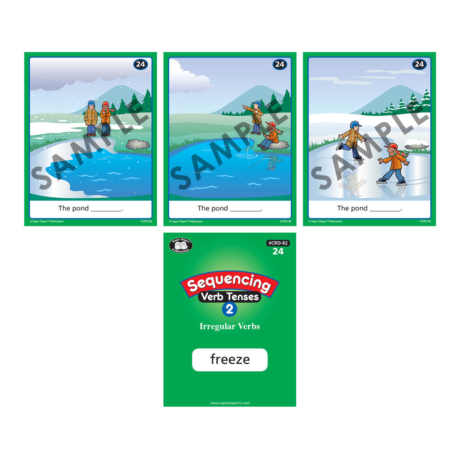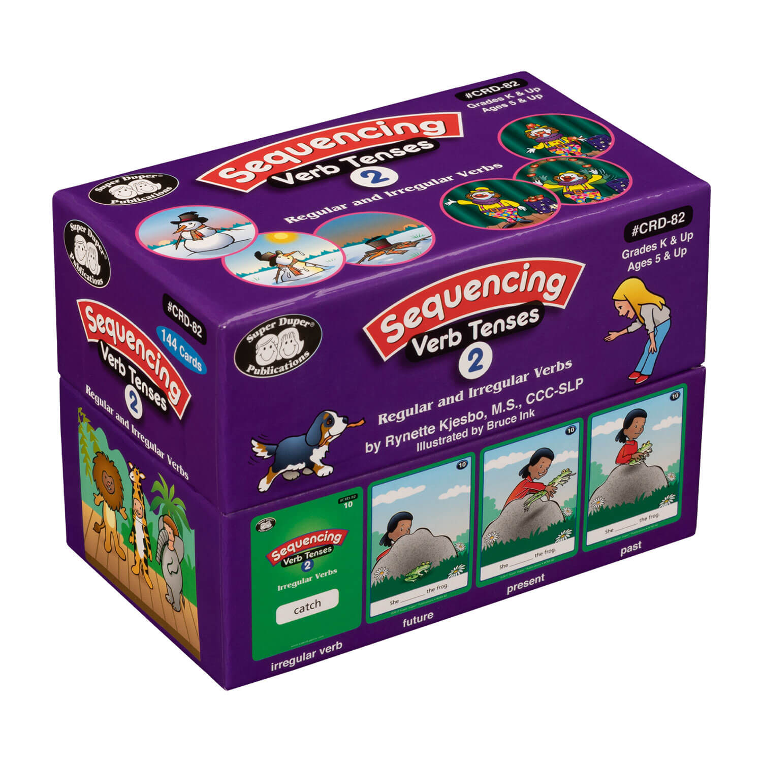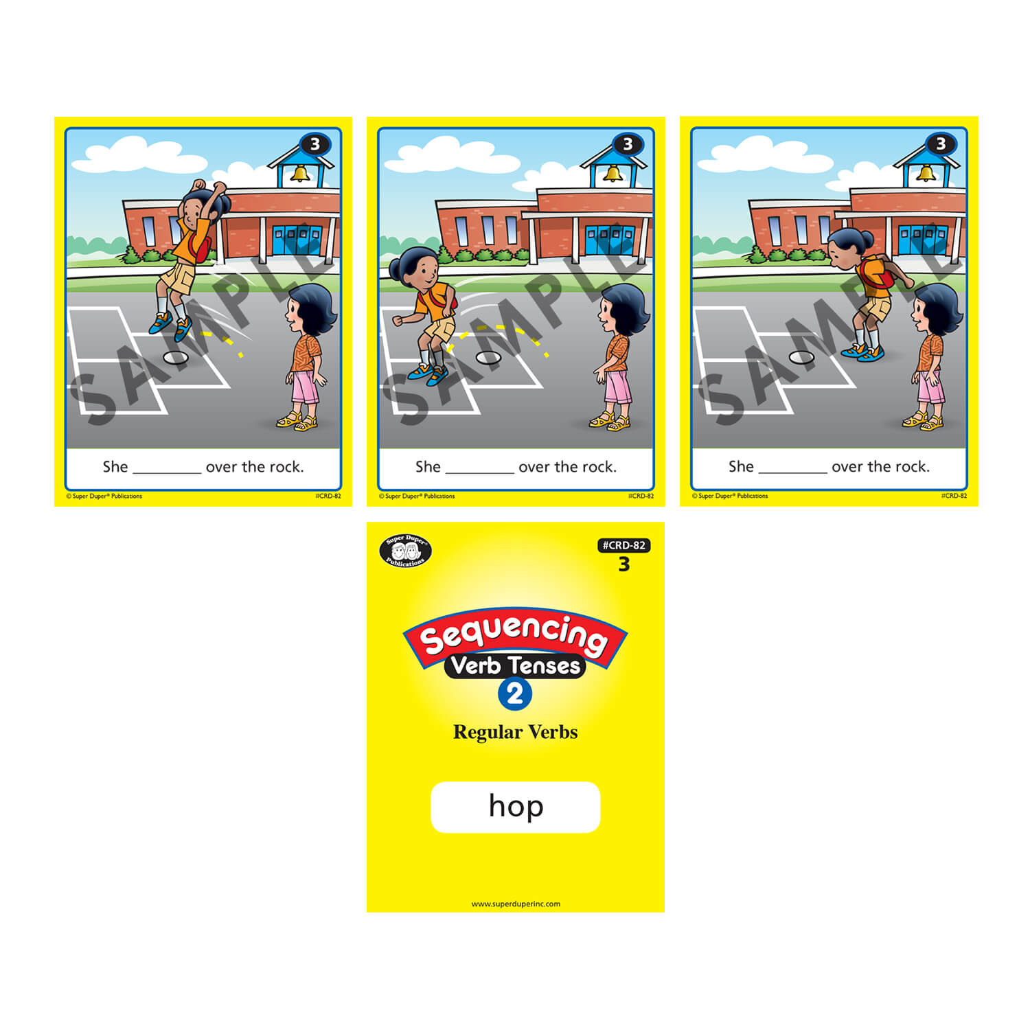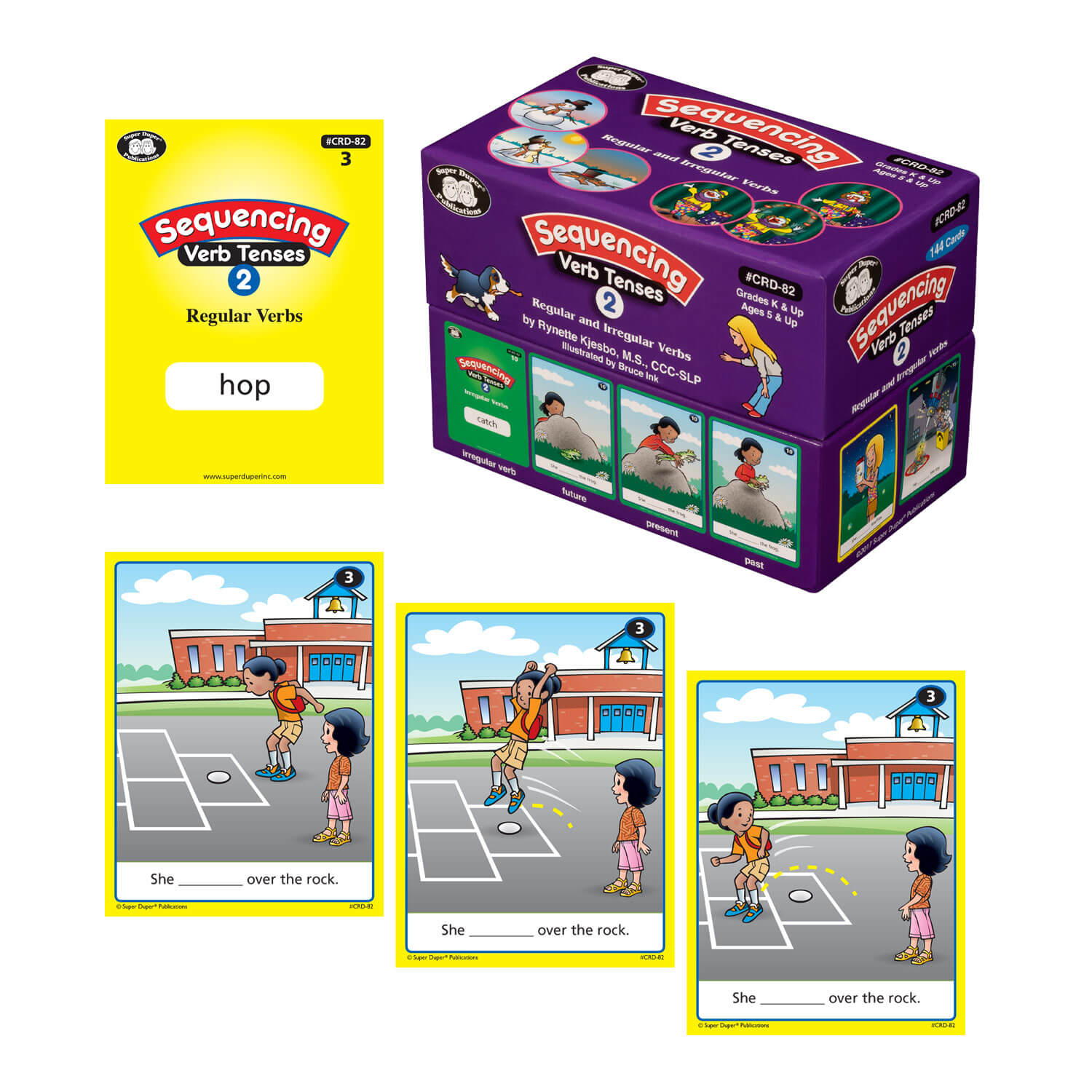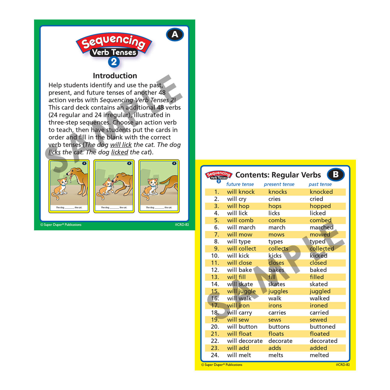 You asked for more sequencing with verbs, and we heard you! Students learn to identify and use 48 additional verbs with Sequencing Verb Tenses 2! Each of the 24 regular and 24 irregular colorfully illustrated verbs are in three-step sequences (future, present, and past ). Choose an action verb to teach, and then have students put the cards in order and fill in the blank with the correct verb tense.