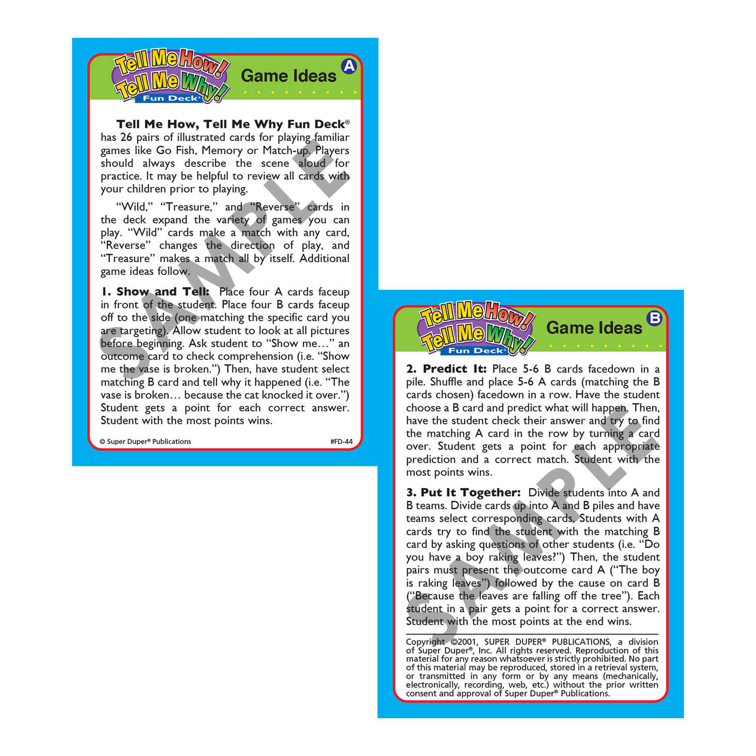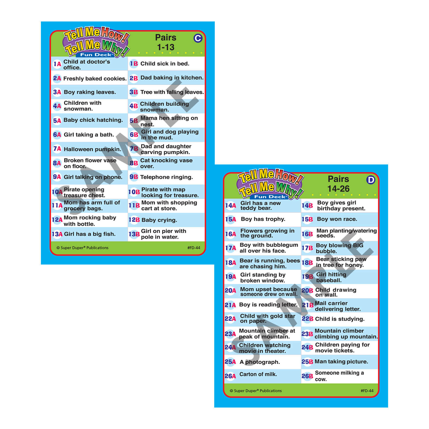 - 26 sets of match-up cards (52 total - 2½" x 3½")