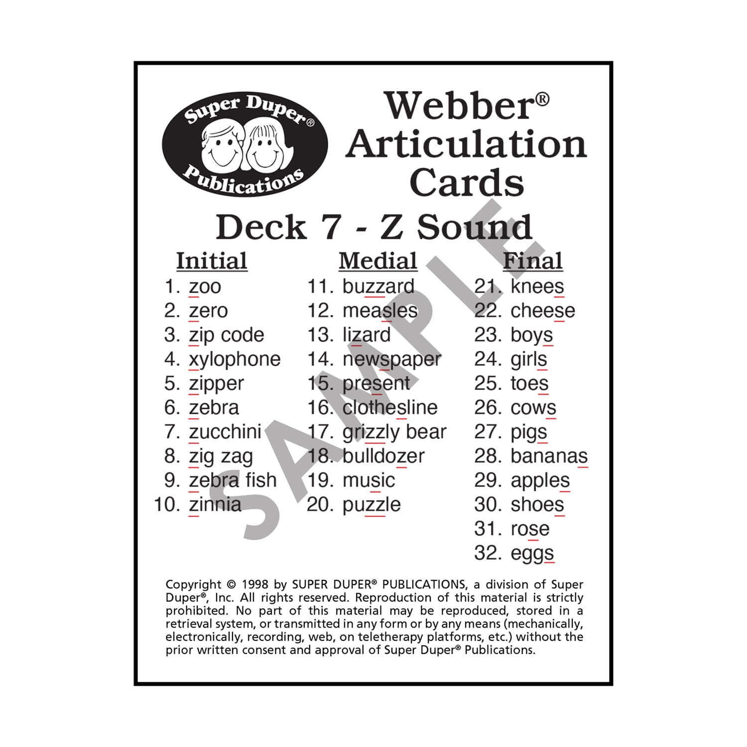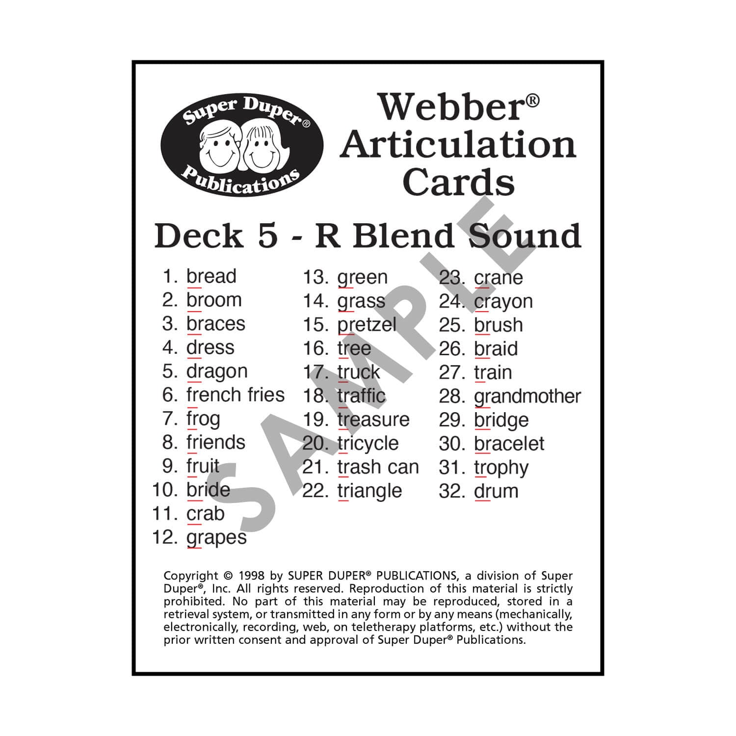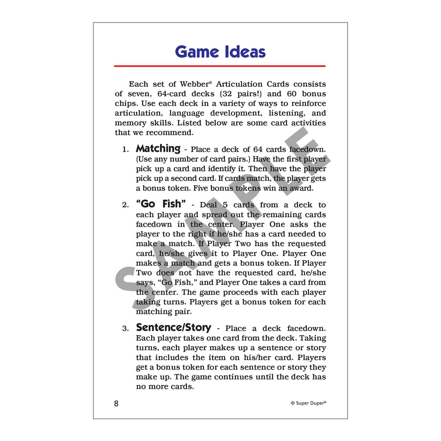 Use Webber Articulation Cards with a variety of activities to reinforce articulation, language development, listening, and memory skills.