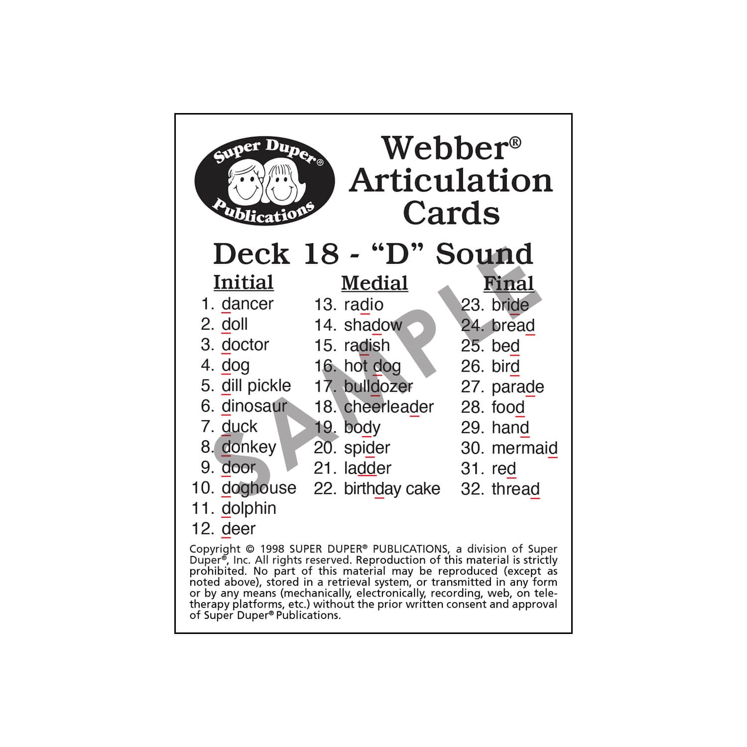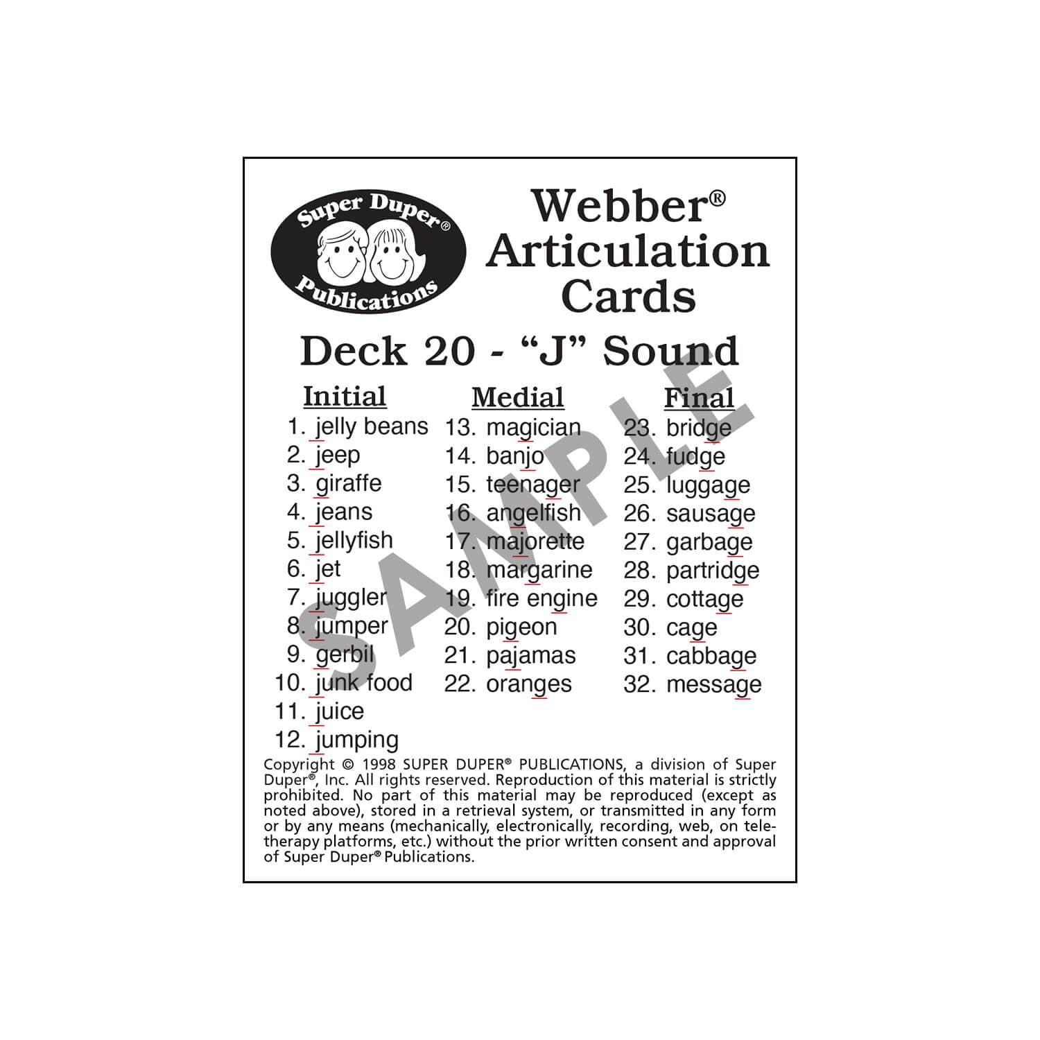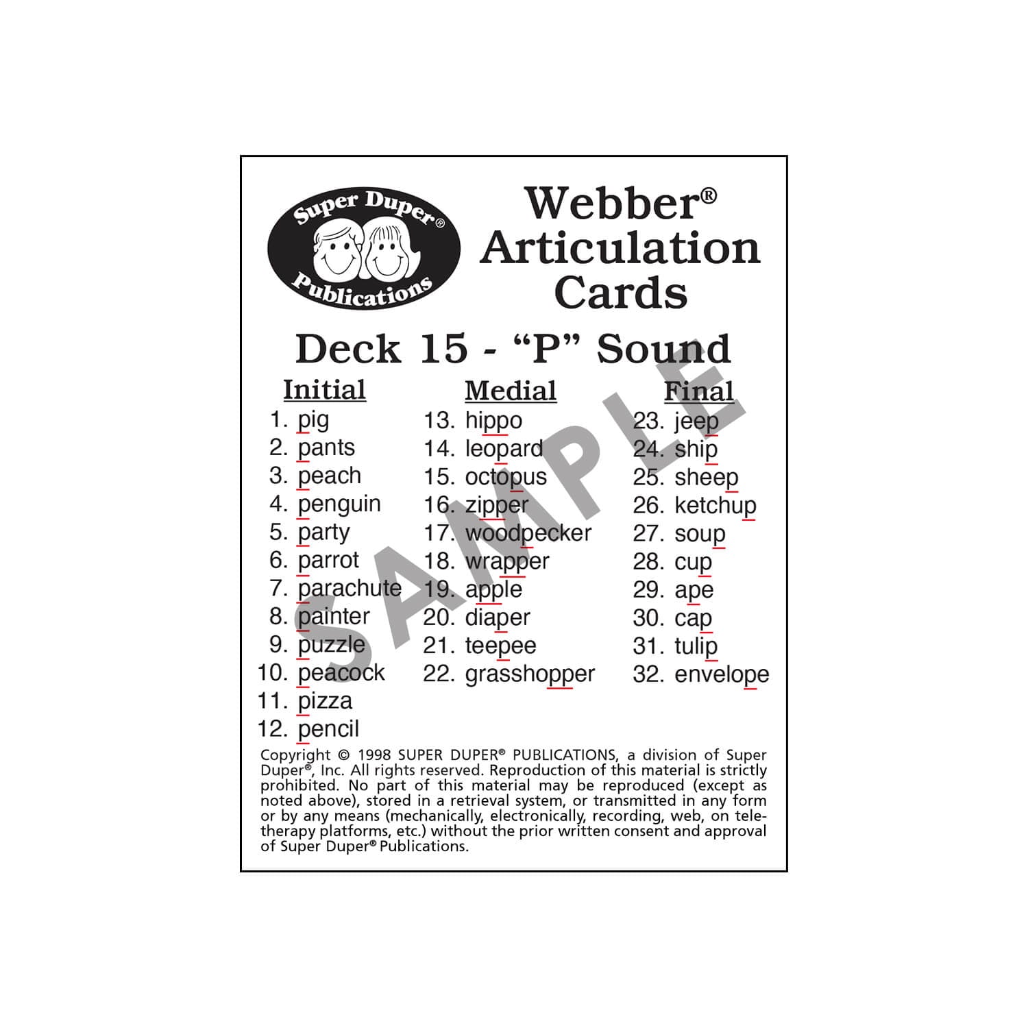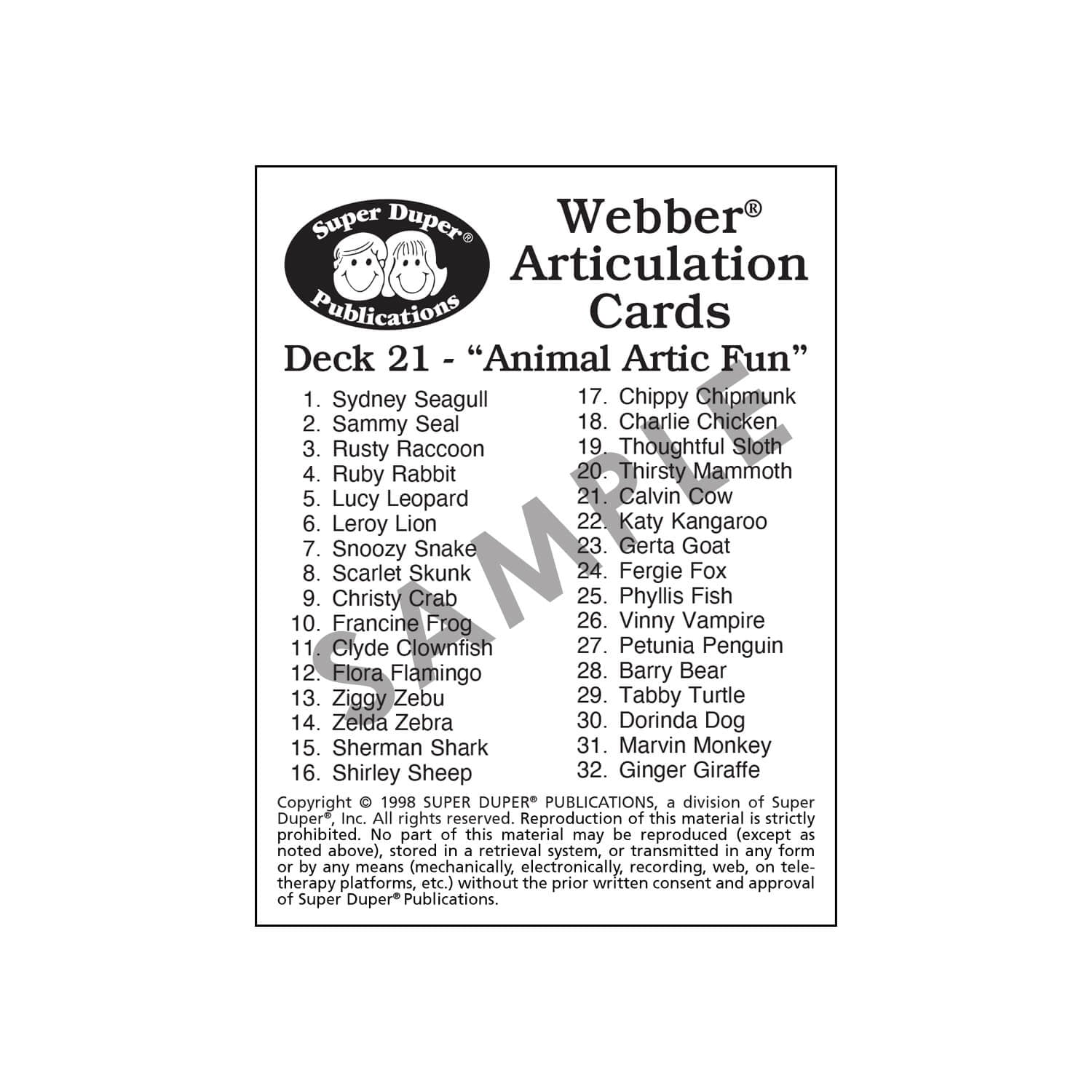 Use Webber Articulation Cards with a variety of activities to reinforce articulation, language development, listening, and memory skills.