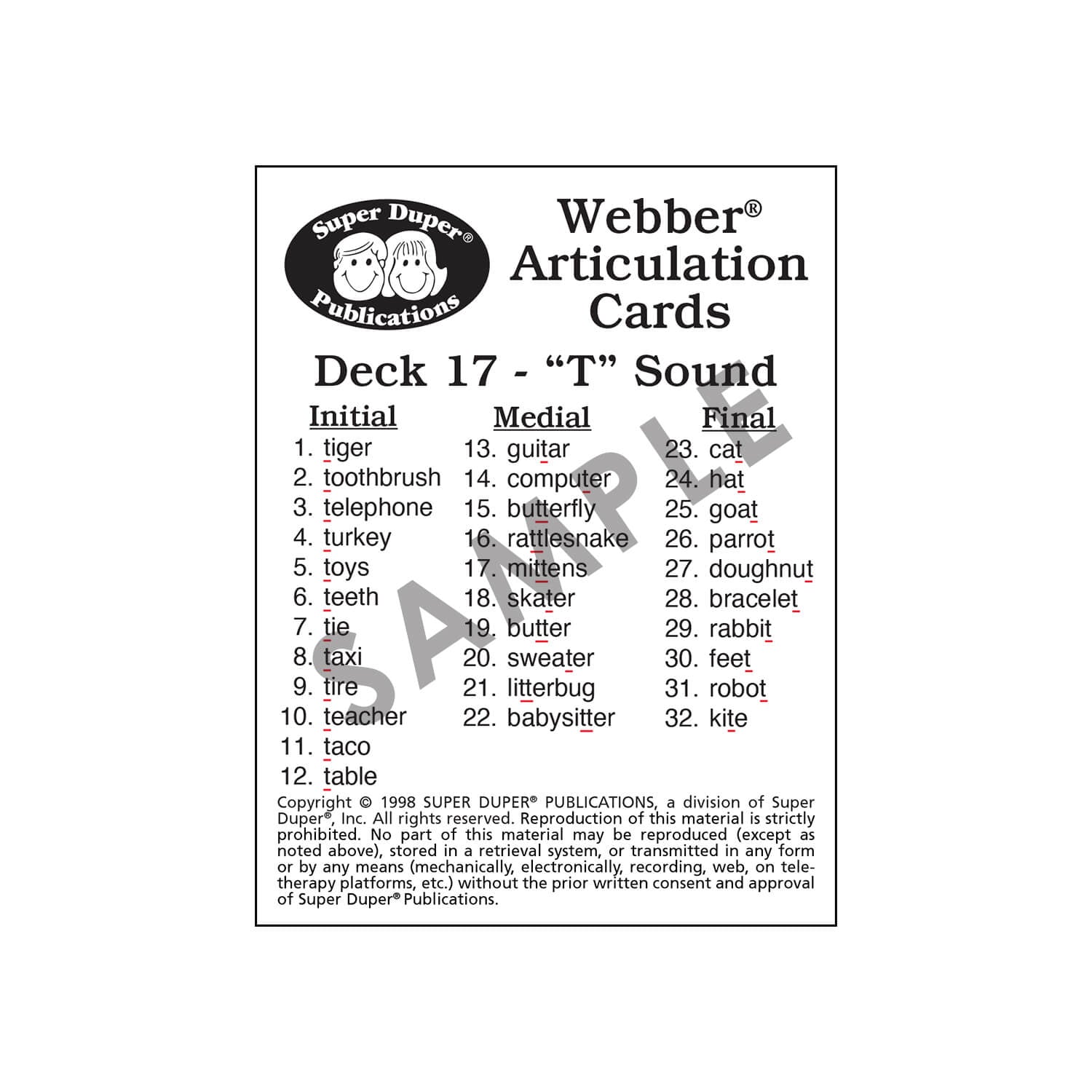 - Target sounds in initial, medial, and final positions in each deck