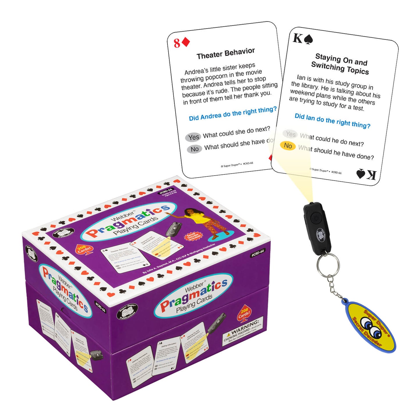 If a student has not learned the rules of social language, interacting with peers and adults is not always easy. With these four decks of Pragmatics Playing Cards, your students will master these rules and discover ways to manage challenging social situations.
