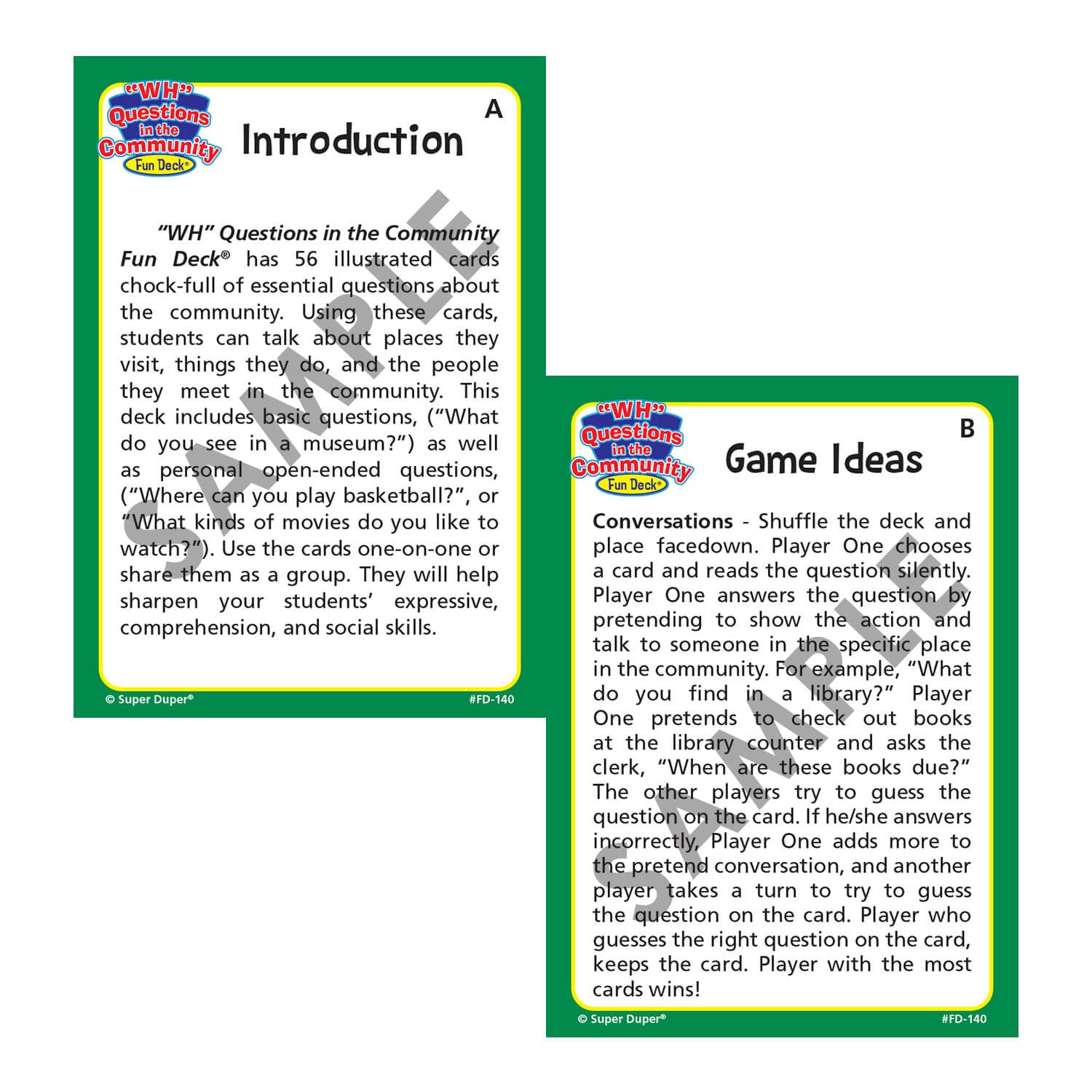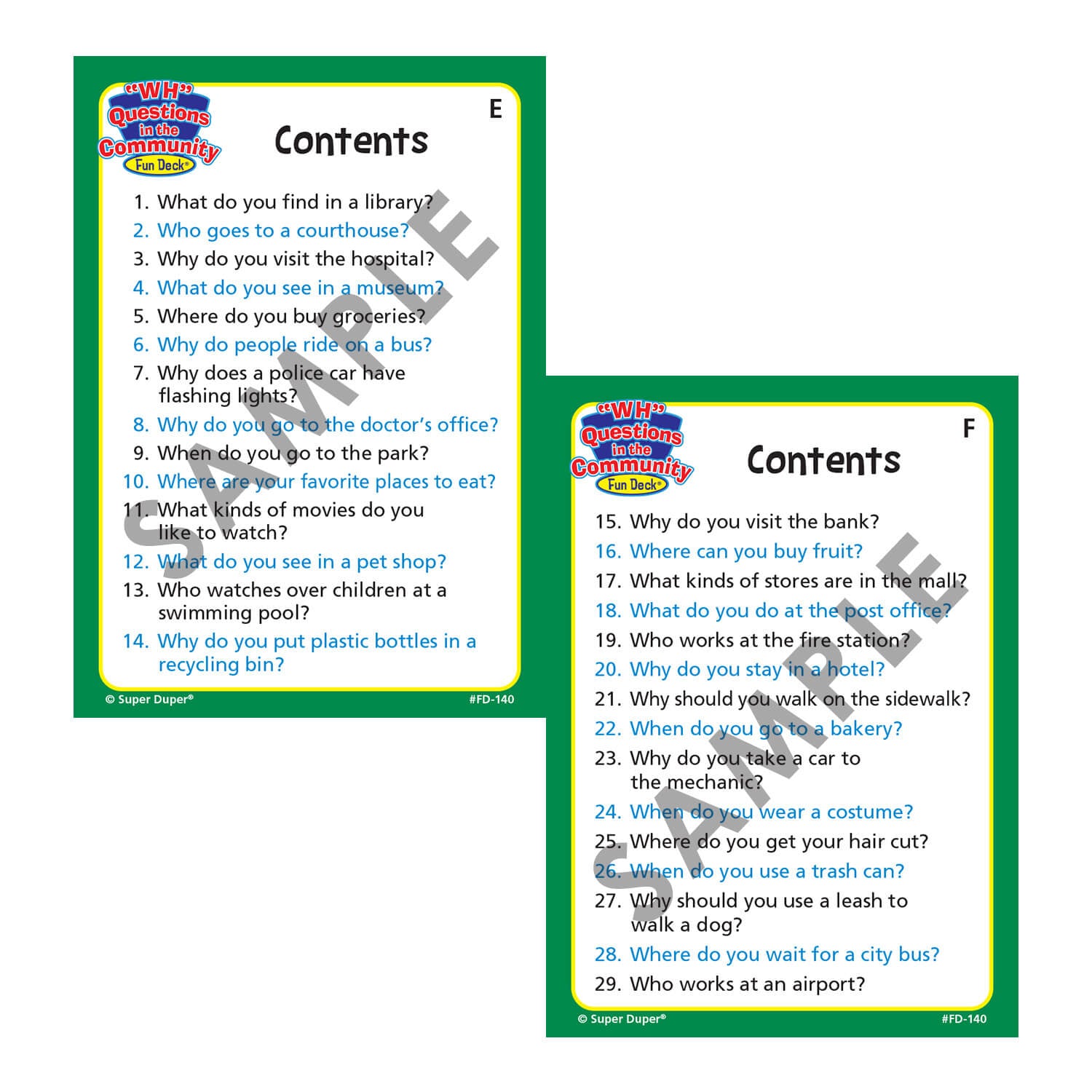Help students improve their understanding of different social situations and behaviors within the community as they answer "WH" questions.