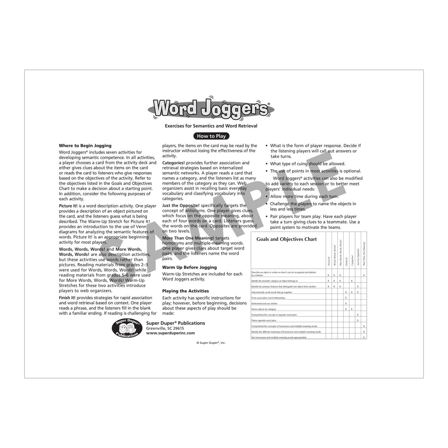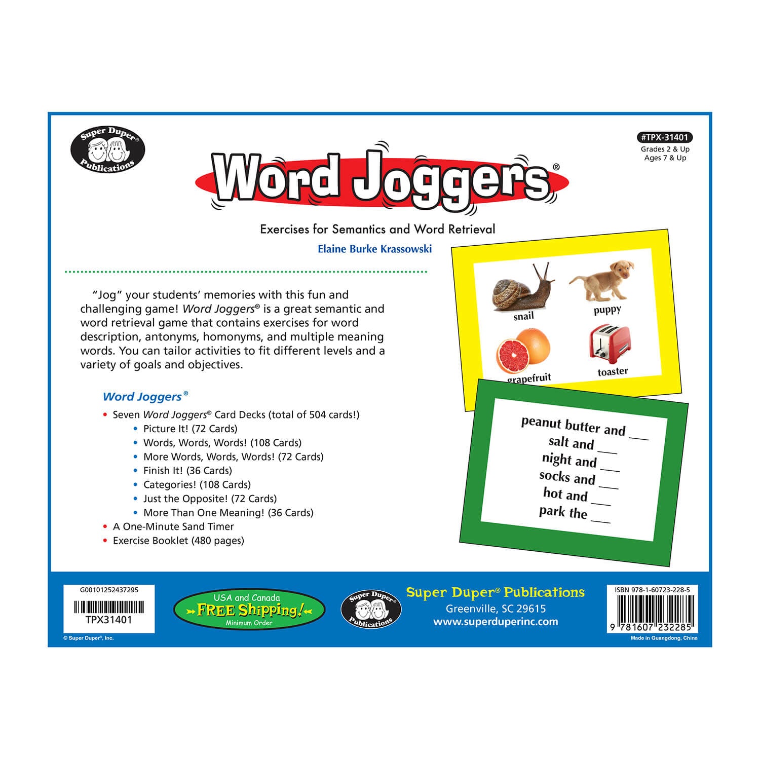 "Jog" students' word memory with this fun and challenging game - now with full-color photos! Improve students’ abilities to categorize words, describe and define words, recognize word characteristics, and determine important features of a word’s meaning. Target a wide range of players by tailoring 7 different activities designed to address similes, antonyms, multiple-meaning words, and more!
